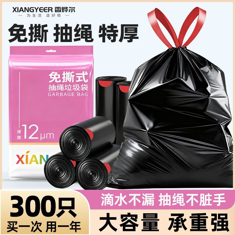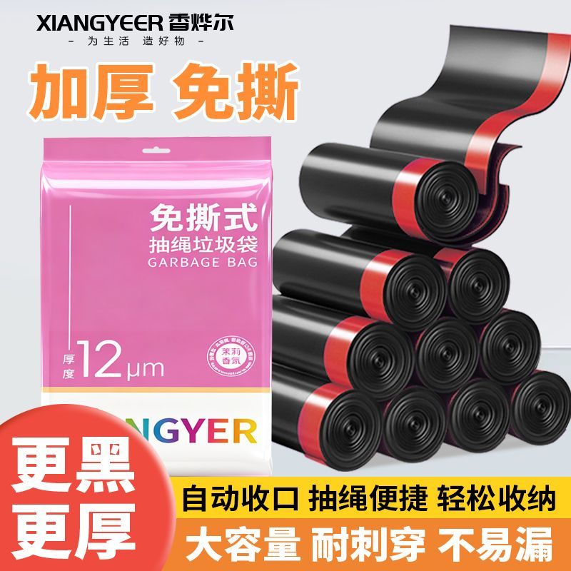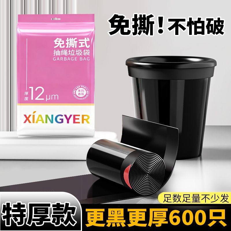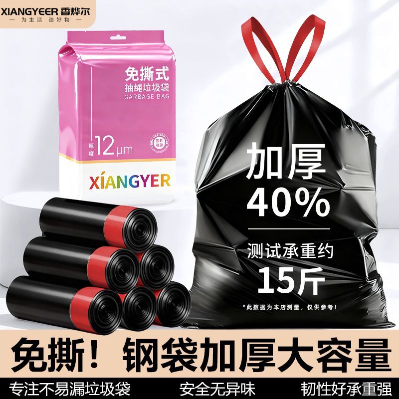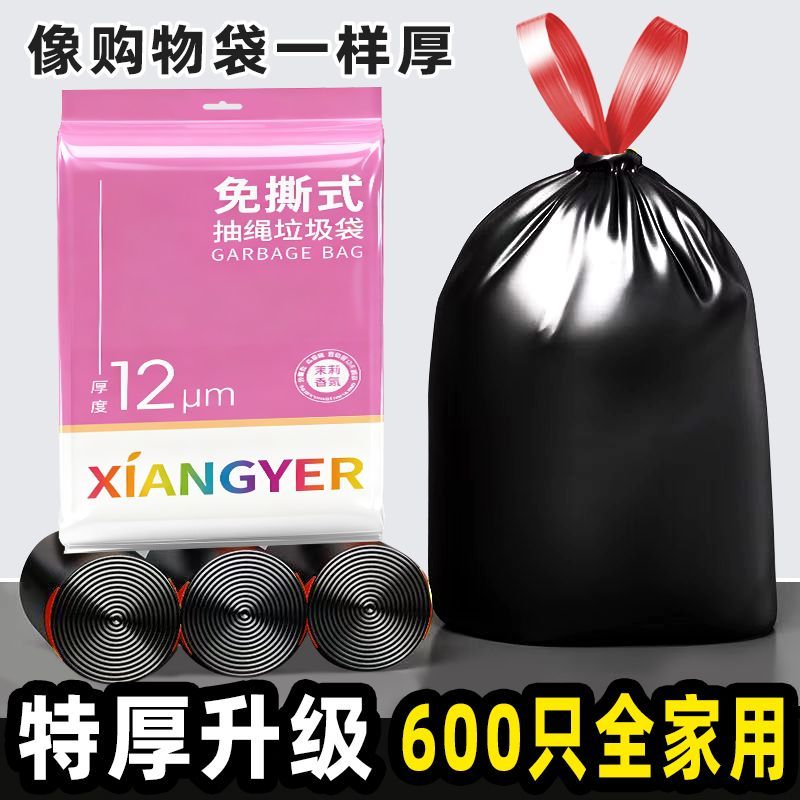 特厚垃圾袋抽绳加厚黑色一次性学生宿舍手提式收口塑料袋家用厨房