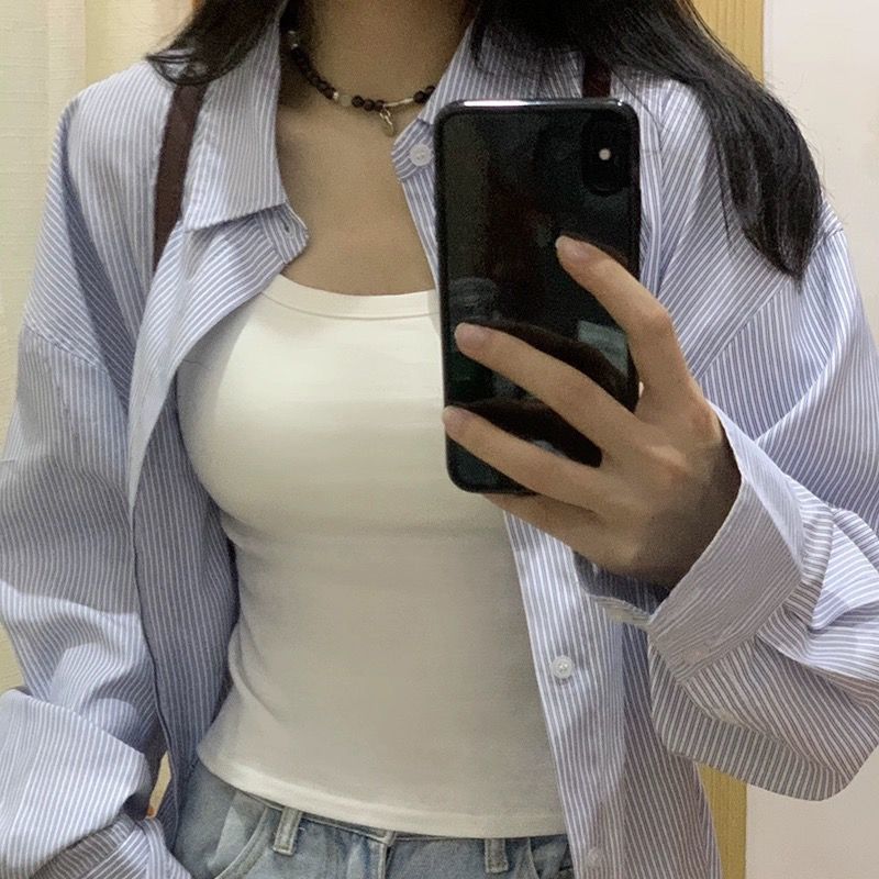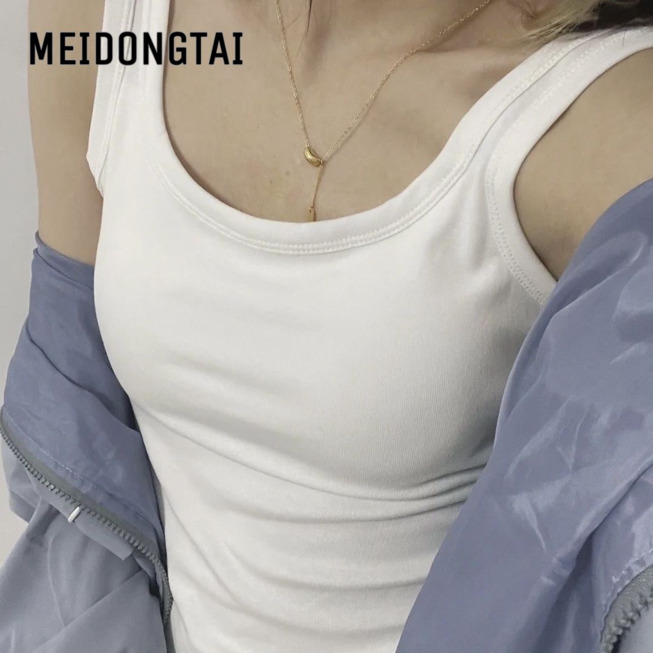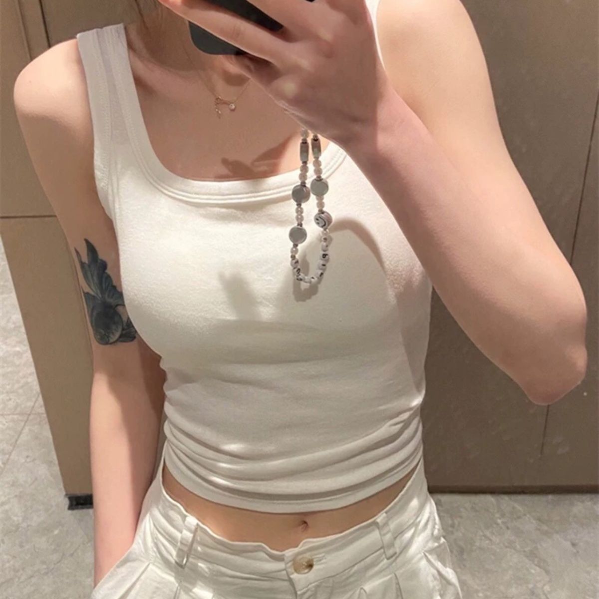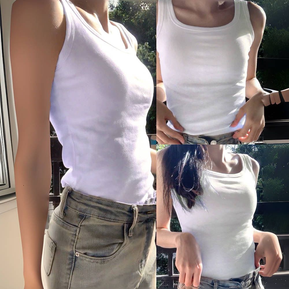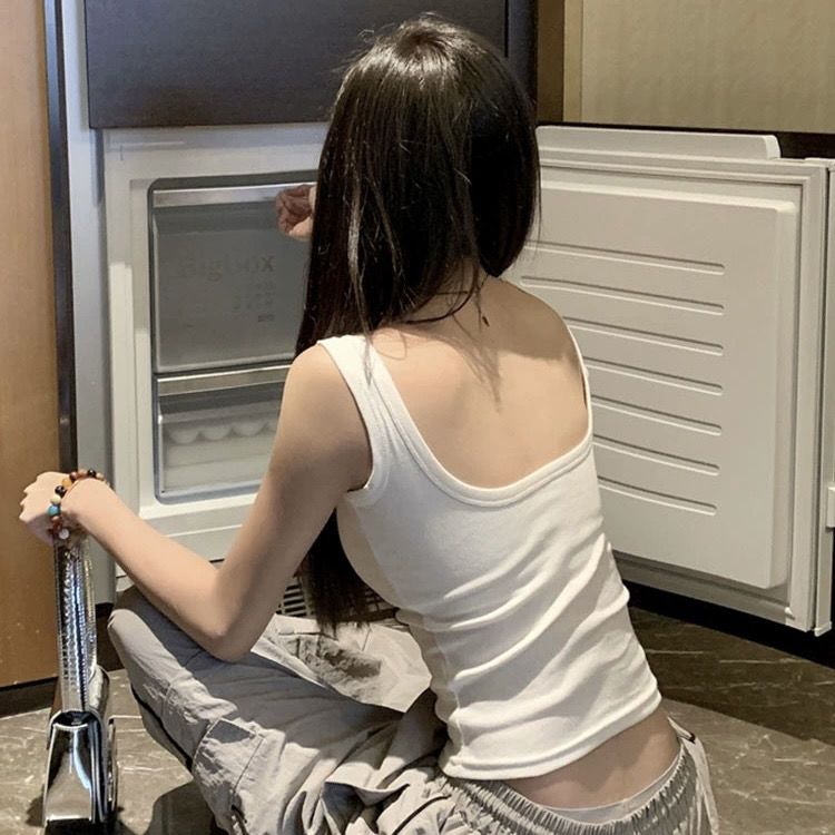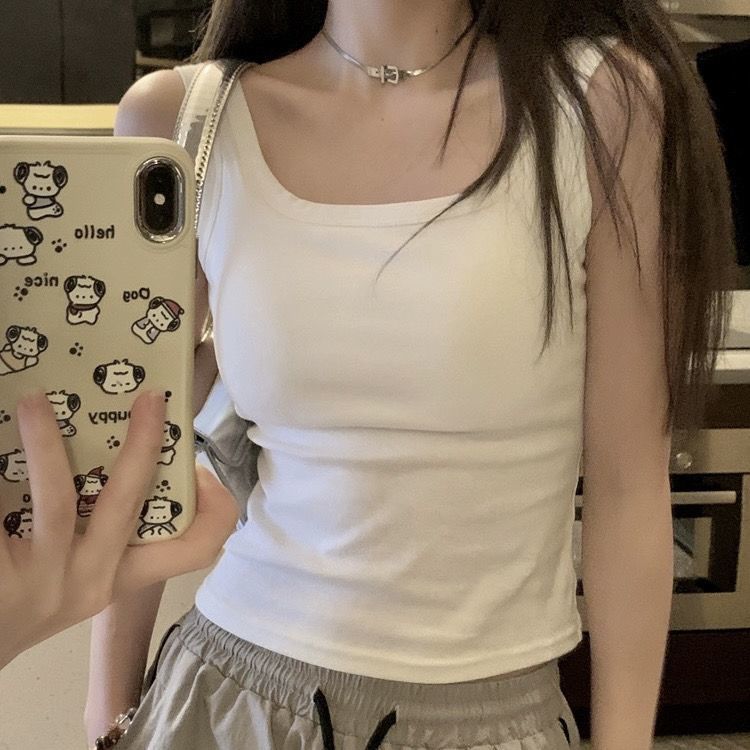 辣妹性感纯欲风白色遮副乳吊带背心女带胸垫内搭外穿美背打底上衣